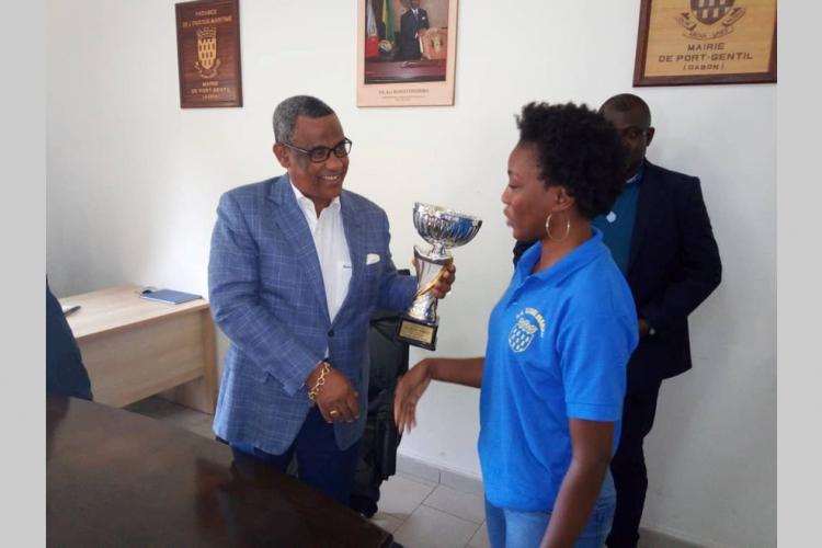 Aux côtés de Jean-Jacques Igambas, président de l'Omnisport Stade Mandji, les responsables du club et des joueuses de l'équipe seniors de handball dames, sont allés, lundi 22 avril, présenter au nouveau maire de Port-Gentil, Gabriel Tchango, le titre obtenu lors du dernier tournoi international Nicole Asselé, et lui annoncer les performances réalisées par la section football lors du récent Gabon Oil National Foot 1.